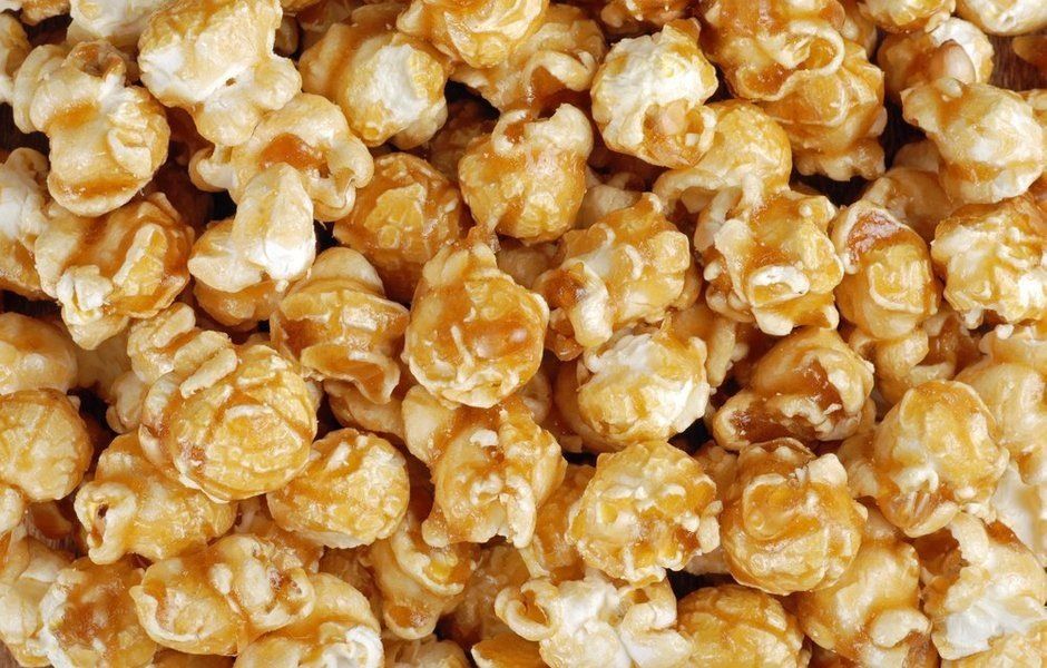 Горячий попкорн соединяют с небольшим количеством арахисовой пасты, дают остыть и получают сладко-топлёный оттенок.