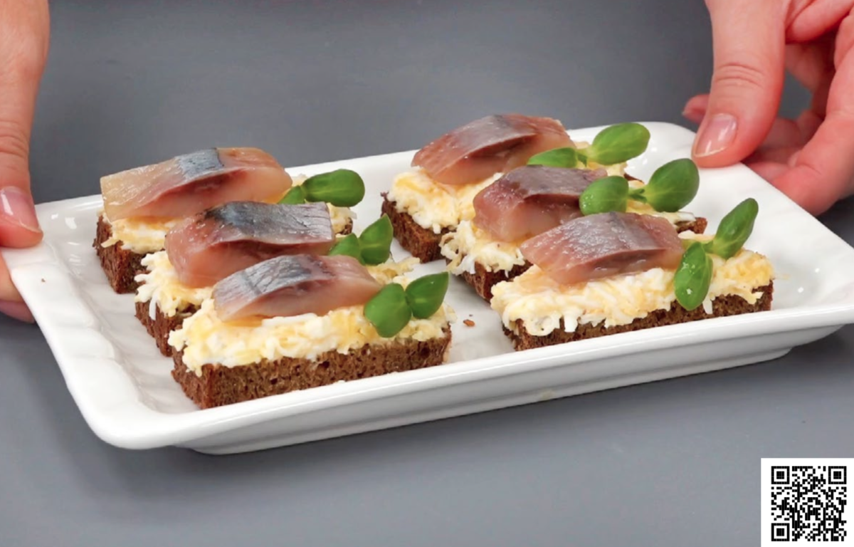 Как альтернативу, закуску можно подавать в тарталетках, заполнив их яично-сырной смесью и украсив нежными кусочками селедки и зеленью. Для удобства нарезайте селедку на кубики — так удобно есть. Такой вариант станет прекрасной находкой для любой трапезы.