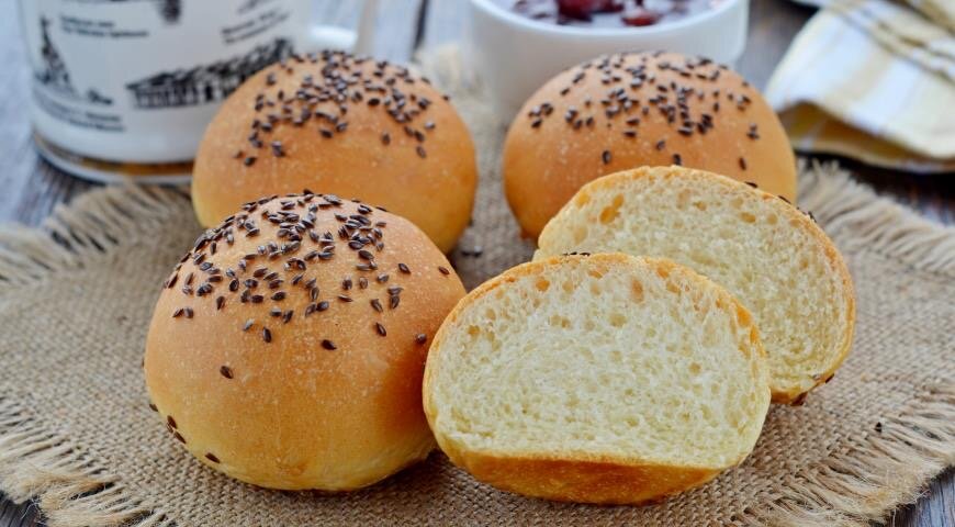Эти домашние булочки отлично подойдут для бургеров. Достаточно придумать к ним начинку: сделать котлеты, выбрать свежие овощи, зелень и соусы. Возможности сбора многослойных сэндвичей исключительно разнообразны!