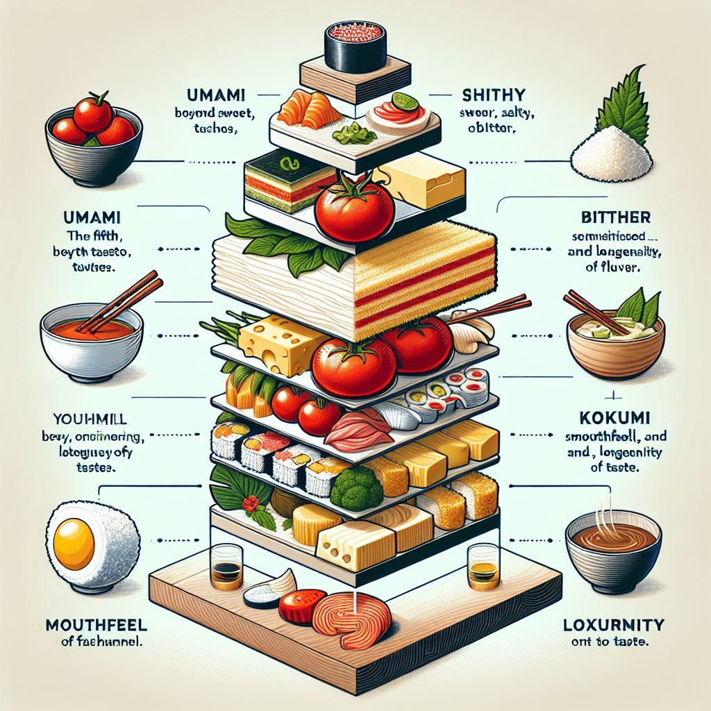 Кокуми (??) относится к ощущениям текстуры и гармонии различных вкусов, создавая впечатление баланса и глубины ощущений во рту. Это не просто вкус, а целый мир впечатлений, который обогащает вкус других веществ благодаря своей способности усиливать и менять их. Дословно переводится как «уголок вкуса», подчеркивая его нюансированность и сложность.