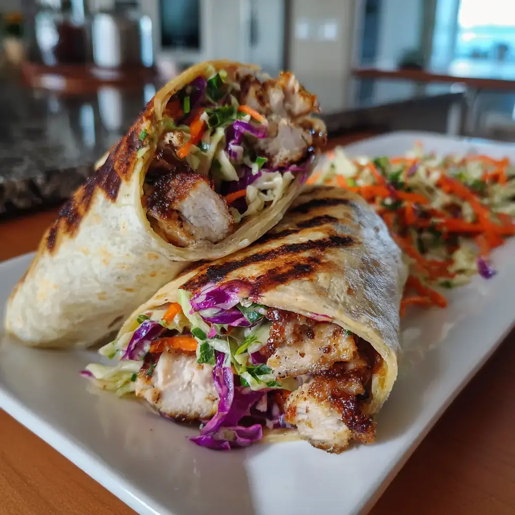 Теперь пришло время формировать шаурму! Расстелите лаваш, выложите на него порезанную курицу, затем щедро добавьте овощной салат. Заверните лаваш в рулет, подбирая края, чтобы начинка не вываливалась.