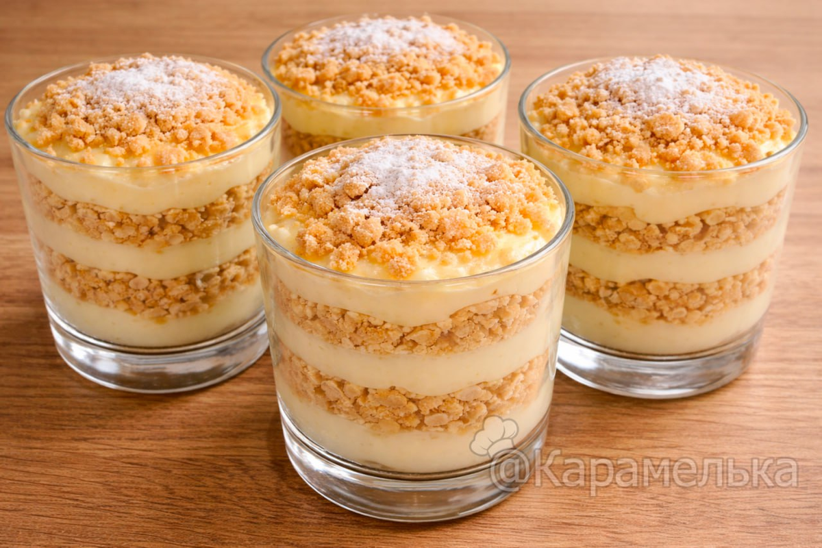 У этого «Наполеона» в стакане есть возможность для творчества: можно варьировать количество крема и крошки по вкусу, добавлять ваниль или использовать более крупную крошку для хруста. Подавайте этот десерт в прозрачных стаканах, чтобы слои выглядели аппетитно и привлекательно, и удивите своих гостей.