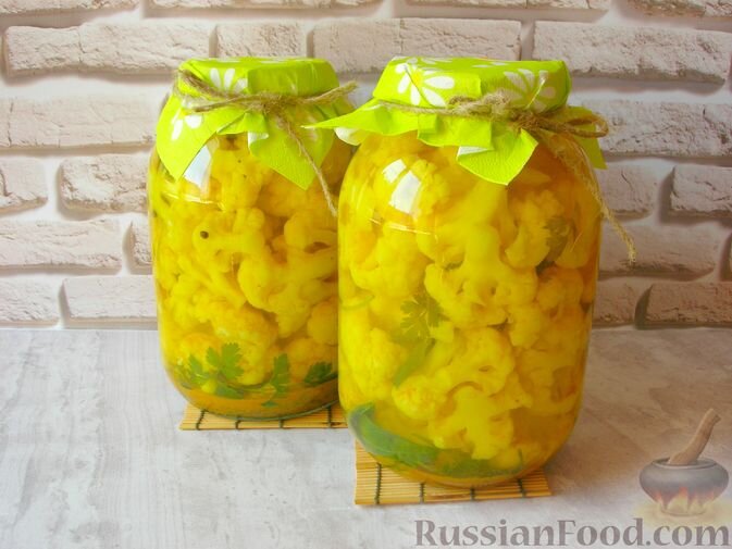 Маринованная цветная капуста с куркумой выглядит не только эффектно — она порадует вас ярким вкусом и добавит позитивного настроения в зимние дни. Эту яркую заготовку можно использовать как самостоятельное блюдо или как элемент гарнира.