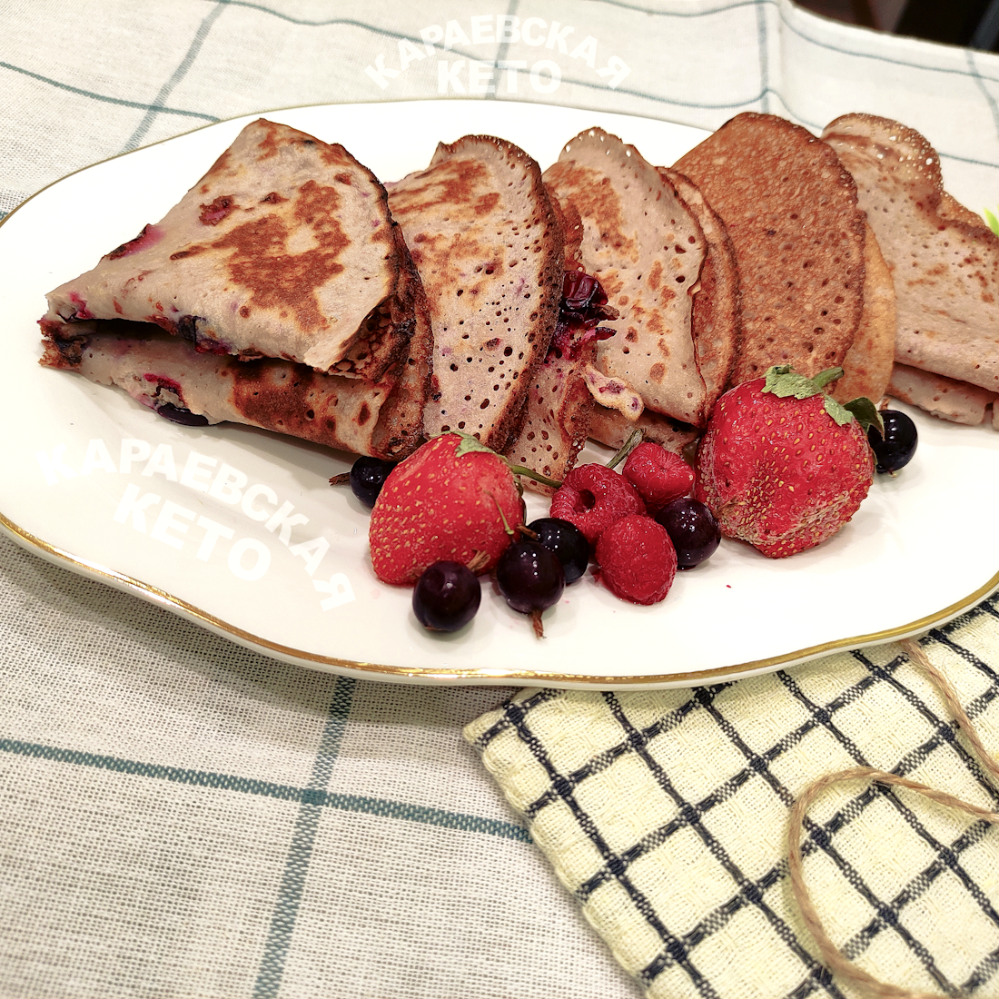 Чтобы сделать ягодные кето-блинчики, наберитесь следующих ингредиентов: