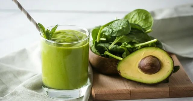 Освежающий зеленый смузи с авокадо и шпинатом