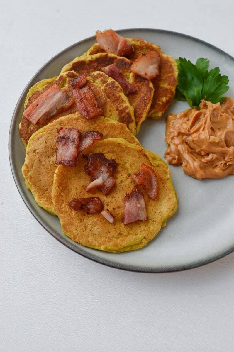 Панкейки подают вместе с беконом и арахисовой пастой. Надеемся, это блюдо окажется для вас настоящим открытием!