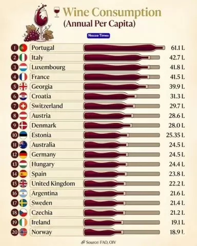 Согласно данным Международной организации виноградарства и виноделия, на первом месте в рейтинге находится Португалия с впечатляющим показателем 61,1 литра вина на человека в год. Вторая строчка досталась Италии, где этот показатель составляет 42,7 литра, в то время как Люксембург замыкает тройку с 41,8 литра на душу населения.
