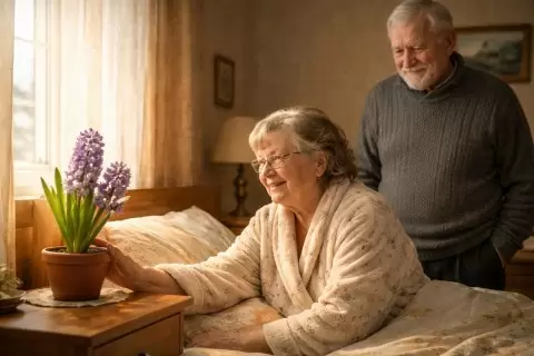 На утро 8 марта Василий, увидев цветущий гиацинт, принёс его в спальню и поздравил Зинаиду с Днем рождения и с Восьмым марта. Счастливое лицо Зинаиды, когда она увидела цветы, стало лучшей наградой для Василия, подтверждающей: любовь создается не только подарками, но и усилиями и заботой.