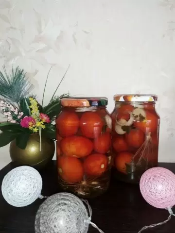 Банки с помидорами стерилизуют в течение 15 минут. По истечении времени их вынимают и плотно закатывают крышками. Простое и вкусное блюдо готово к зимнему хранению и порадует зимой своих обладателей мягким вкусом и ароматом.