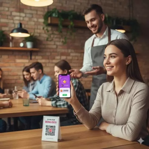 - Гости могут сканировать QR-код на столе или чеке, получая возможность подписаться на бонусы и акции через соцсети.