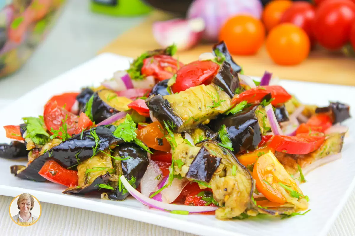 Баклажаны стали настоящей звездой кулинарного мира, и не зря! Этот салат с запечёнными баклажанами и свежими овощами окажется не только вкусным, но и полезным выбором для тех, кто стремится к здоровому образу жизни. Отсутствие жарки делает блюдо лёгким, а разнообразие ингредиентов — ярким и аппетитным.