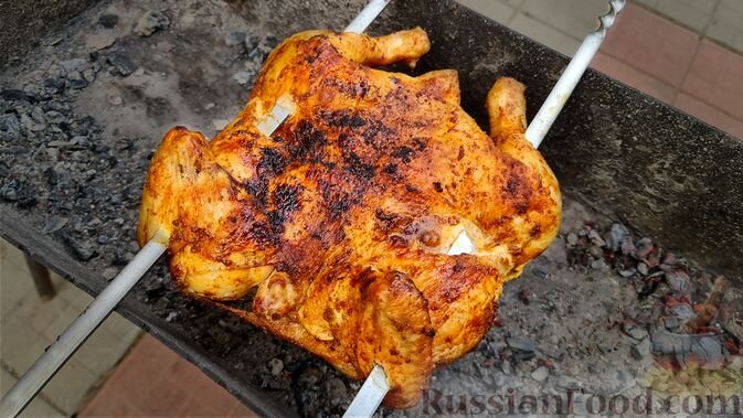Шашлык из целой курицы, приготовленный на мангале, также ждет своего часа. Идеальный маринад делает блюдо казалось бы простым, но очень вкусным – курица остается сочной благодаря тому, что готовится целиком.