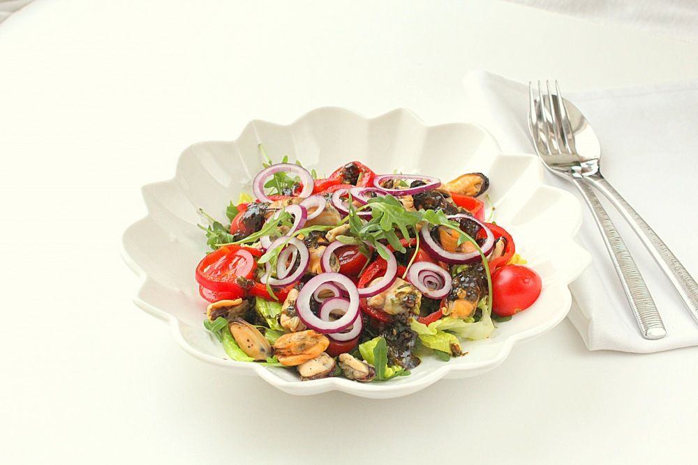 Этот салат — идеальное сочетание легкости и питательности, особенно подходящее для теплых летних дней. Уникальный вкус рукколы, сладкие помидоры черри и морской аромат мидий создают неповторимую гармонию в каждом укусе.