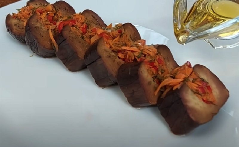 Баклажаны перед использованием стоит промыть и сделать надрезы, чтобы они впитали все ароматы начинки. Бланширование в течение нескольких минут поможет добиться необходимой мягкости. После этого баклажаны заполняются начинкой из натертой моркови, чеснока и сладкого перца, что придаст закуске насыщенный вкус.