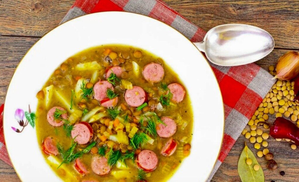 Ностальгический чечевичный суп с колбасой