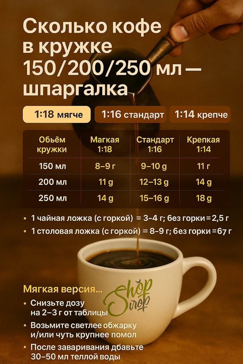 Важно помнить главный принцип. Фокусируйтесь не на количестве ложек, а на правильном соотношении ингредиентов. Для домашних условий запомните три ключевых значения: 1:18, 1:16 и 1:14, и подстраивайте их под свои предпочтения.