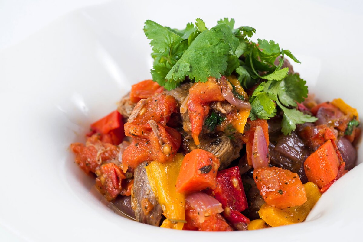 Это блюдо может подаваться как в горячем, так и в холодном виде, а его вкус формируется из свежих, солнечных овощей и ароматных специй.