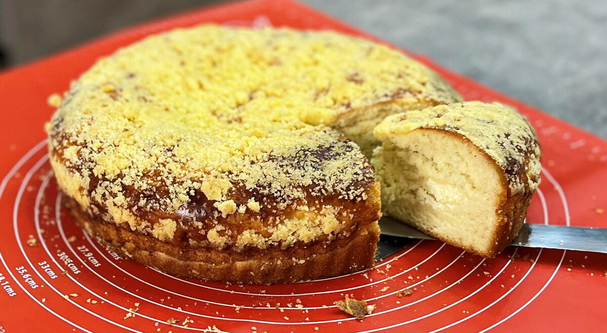 Сформированный пирог посыпьте сладкой крошкой и поместите в разогретую до 180 градусов духовку на 35 минут. В итоге вы получите нежнейшую выпечку, которая станет отличным дополнением к вашему чаепитию. Приятного аппетита!