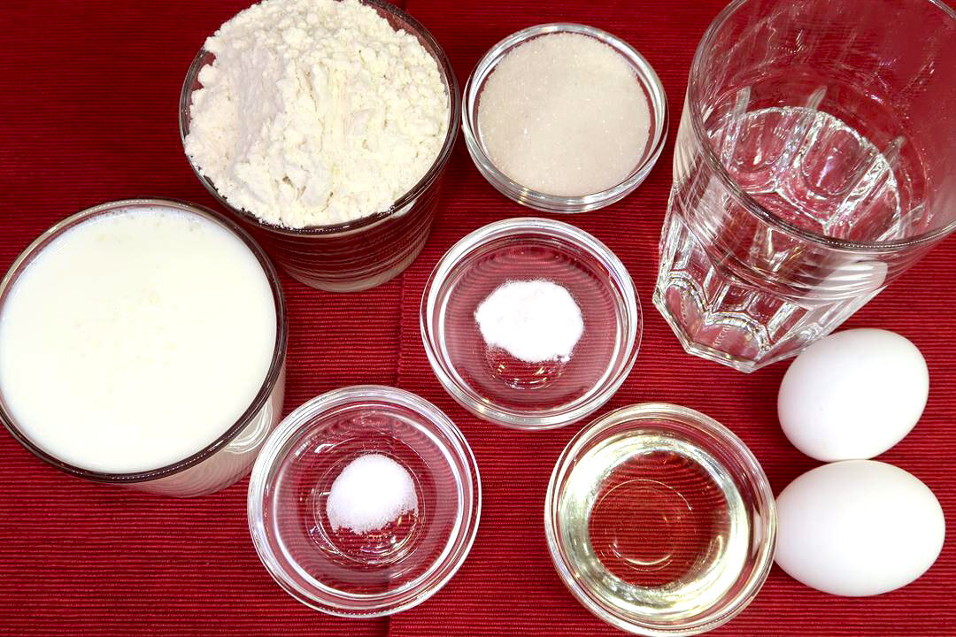 Добавьте растительное масло, а затем кипяток, вводя его тонкой струйкой, продолжая взбивать тесто. Нагрейте сковороду до высокой температуры и только для первого блина смазать её маслом. Наливайте тесто на сковороду и сразу вращайте, чтобы оно равномерно распределилось. Блины быстро подрумянятся, и с каждой стороны достаточно выпекать их менее минуты.