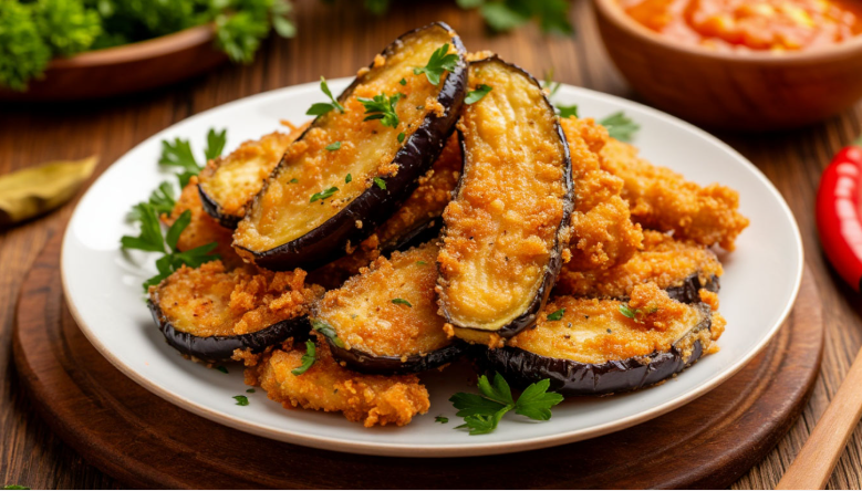 - Перед жаркой обваляйте кусочки в крахмале. Это не только создаст защитный барьер против масла, но и придаст баклажанам аппетитную хрустящую корочку.