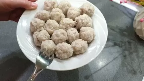 3. Лепите небольшие фрикадельки, используя примерно 1 чайную ложку фарша для каждой. Обваливайте их в подготовленной муке.
