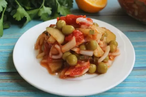 Этот легкий и аппетитный салат, известный как "Колымский", имеет две версии: с томатным соком и без. В нашем случае мы представим зимний вариант, который идеально подходит для холодного времени года, когда свежих овощей не хватает. Приготовление этого салата займет всего несколько минут, и он порадует всех своим вкусом и свежестью. Он станет отличным дополнением к любому повседневному столу, а также подойдет для постных дней, особенно для веганов и вегетарианцев. Если под рукой есть свежая зелень, её можно смело добавлять!
