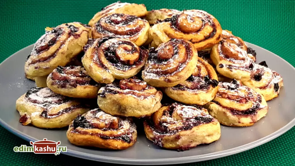 Для начинки: - Черная смородина или другие ягоды – 100 г - Сахар – 70 г - Грецкие орехи – 30 г - Крахмал – 1 ч. л. - Выпекать при 180° около 20 минут
