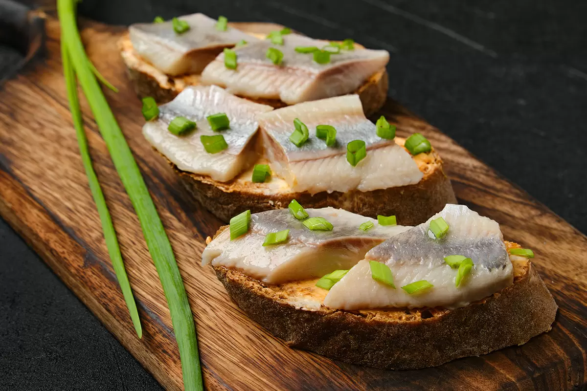 - Канапе с соленой сельдью: Нежные кусочки бородинского хлеба, намазанные горчицей и topped с соленой сельдью, создадут идеальное сочетание вкусов. Дополнить блюдо можно перьями зеленого лука.