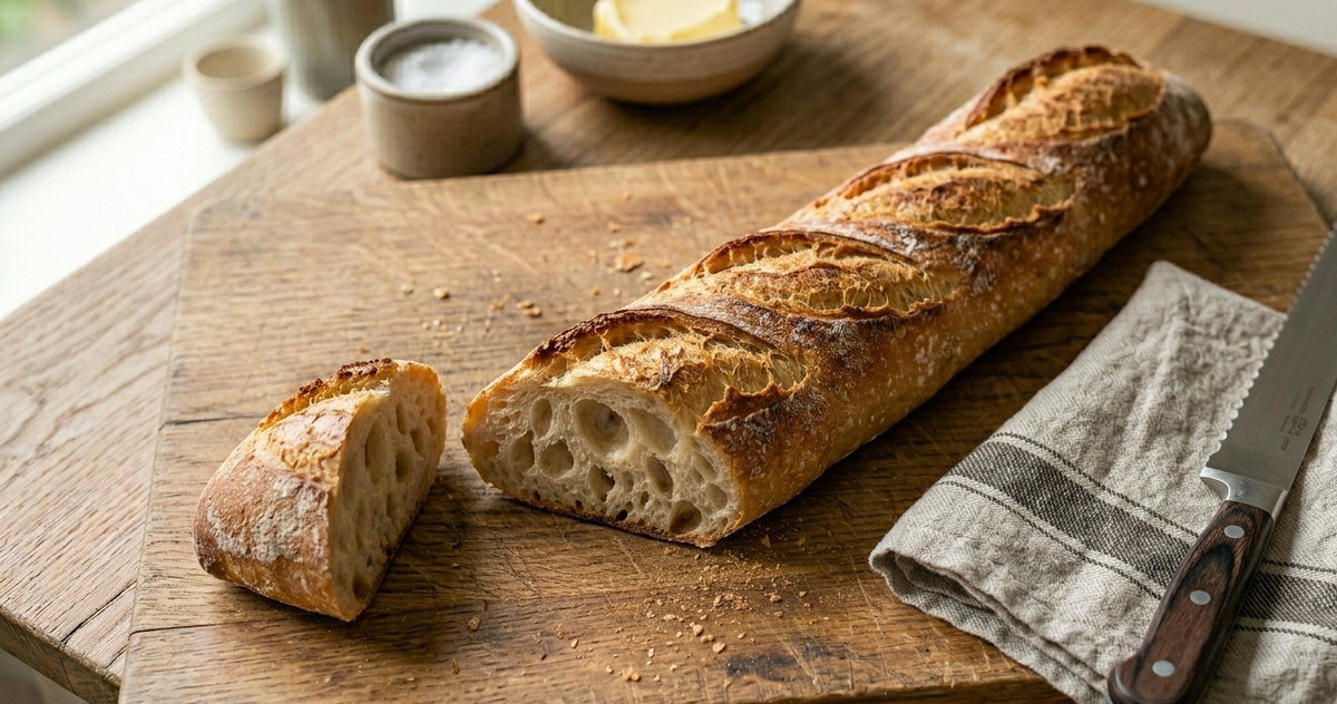 Этот рецепт прост, не требует дорогих ингредиентов, и позволяет каждой семье наслаждаться свежим багетом, который съедается ещё тёплым, не дожив до полного остывания.