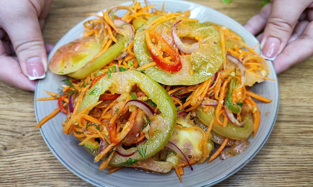 С приходом осени начинается настоящий сезон зеленых помидоров, многие из которых долго хранятся и не успевают дозревать. Именно тогда можно смело приступать к приготовлению этого удивительного салата, который ежемесячно радует своим вкусом.